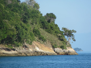 Hoje pela manhã , fomos para a praia do Dentista e quando estavamos chegando, fomos recebidos por um grupo de golfinhos que nos acompanharam, se exibindo, até ancorarmos.